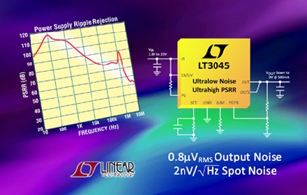 Linear推出超低噪聲、超高電源紋波抑制 (PSRR)、低壓差電壓線性穩(wěn)壓器 LT3045,該器件是廣受歡迎的 200mA LT3042 超低噪聲 LDO 的較大輸出電流版本。LT3045 采用獨(dú)特設(shè)計(jì),在 10kHz 時(shí)產(chǎn)生僅為 2nV/√Hz 的超低點(diǎn)噪聲,在很寬的 10Hz 至 100kHz 帶寬上產(chǎn)生 0.8µVRMS 整體輸出噪聲。其低頻和高頻 PSRR 性能非常出色。低頻 PSRR 直至 10kHz 時(shí)超過(guò) 90dB,高頻 PSRR 直至 2.5MHz 時(shí)超過(guò) 70dB,從而改善了具噪聲或高紋波輸入電源。LT3045 運(yùn)用凌力爾特專有的 LDO 架構(gòu),即精準(zhǔn)電流源基準(zhǔn)之后跟隨一個(gè)高性能單位增益緩沖器,從而產(chǎn)生幾乎恒定的帶寬、噪聲、PSRR 和負(fù)載調(diào)節(jié)性能,并不受輸出電壓影響。此外,該架構(gòu)允許多個(gè) LT3045 并聯(lián),以進(jìn)一步降低噪聲、增大輸出電流并在印刷電路板上擴(kuò)散熱量。