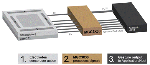 其中比較有代表性的,要數(shù)Microchip公司的GestIC技術(shù)。它基于電場(chǎng)感應(yīng)的原理,在電子設(shè)備周邊的空間中形成一個(gè)電場(chǎng)。當(dāng)手部在空間中運(yùn)動(dòng)時(shí)會(huì)使電場(chǎng)發(fā)生畸變,布設(shè)在電場(chǎng)中的電極接收器會(huì)感應(yīng)到這種變化,并通過專門的控制芯片進(jìn)行信號(hào)處理,對(duì)手勢(shì)進(jìn)行識(shí)別和運(yùn)動(dòng)追蹤,并將數(shù)據(jù)傳遞給電子設(shè)備做出響應(yīng)。Microchip代理商世健公司產(chǎn)品經(jīng)理介紹,與采用攝像頭的光學(xué)3D手勢(shì)識(shí)別技術(shù)相比,GestIC技術(shù)最大的優(yōu)勢(shì)在于功耗極低,能耗節(jié)省多達(dá)90%,同時(shí)能避免環(huán)境光等外部因素的干擾,雖然是一個(gè)近場(chǎng)識(shí)別技術(shù),但其在家庭自動(dòng)化、家電控制、音響系統(tǒng)、電腦及配件、汽車電子等方面,會(huì)有諸多應(yīng)用場(chǎng)景。
