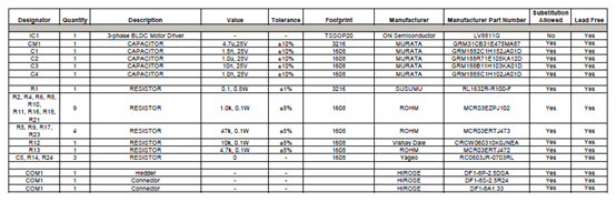 LV8811G評(píng)估板材料清單: