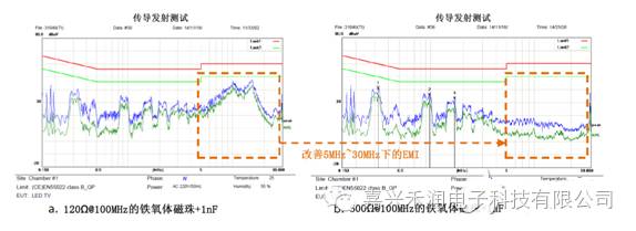 圖3 鐵氧體磁珠對(duì)于傳導(dǎo)性EMI的效果