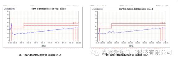 圖4為鐵氧體磁珠對(duì)于輻射性EMI的效果