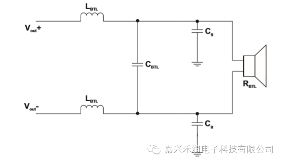 對(duì)于免濾波調(diào)制方式的D類音頻功放,可使用如下LC濾波。