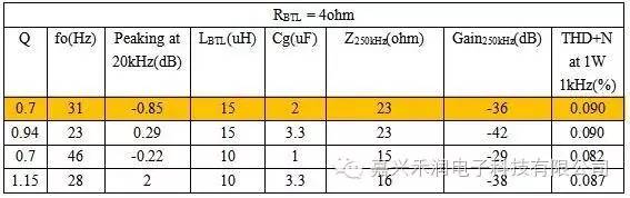 表3 傳統(tǒng)調(diào)制方式4ohm負(fù)載的LC濾波