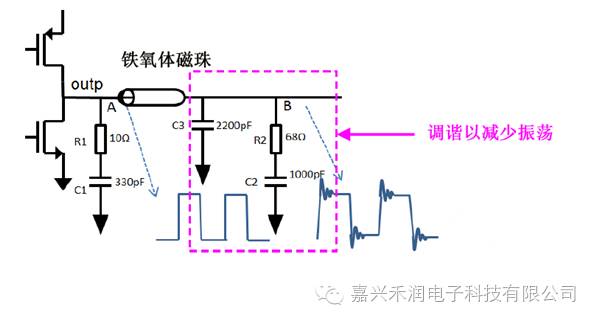 圖8 調(diào)整佐貝爾網(wǎng)絡(luò)和電容(減少振蕩,獲得較慢的邊緣速率)