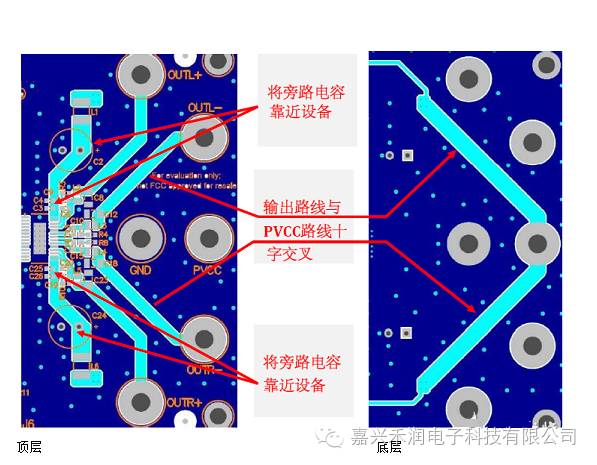 D類功放輸出走線短而粗,包括接到喇叭的線短而粗甚至使用屏蔽線,都能有效的減小EMI。 |