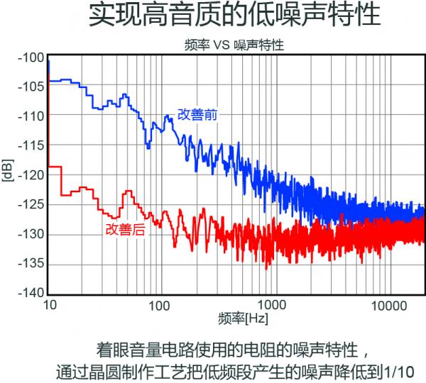・將音量電路產(chǎn)生的低頻噪聲降低到1/10