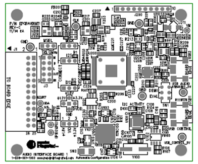 The AUDINT1 board and a compatible DEV board areordered together as an evaluation system (EV system).