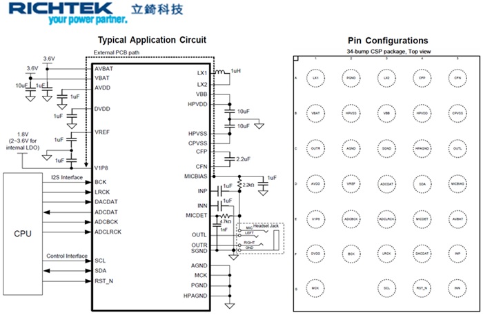 RT5503應(yīng)用于高分辨率I2S接口頭戴式耳機(jī)音量放大裝置 , 在114dB信噪比及30mW功率的條件下 , 總諧波失真加噪聲可達(dá)0.001%@16Ω負(fù)載 , 透過(guò)先進(jìn)Class-G多層次結(jié)構(gòu)操作 , 可以有效降低功耗延長(zhǎng)撥放時(shí)間 , RT5503也提供其他附加功能 , 阻抗感知功能提供負(fù)載信息 , 使得在不同負(fù)載情況下可程序適當(dāng)?shù)囊袅縼?lái)維持穩(wěn)定的輸出功率 , 數(shù)字雜音柵欄功能于無(wú)撥放數(shù)據(jù)時(shí) , 在平緩降低數(shù)字增益值后啟動(dòng)模擬靜音模式以消除輸出雜音 , 數(shù)字音頻接口支持192KHz , 24-bit , 并在4dB~96dB增益范圍內(nèi)提供每階0.5dB微調(diào) 。