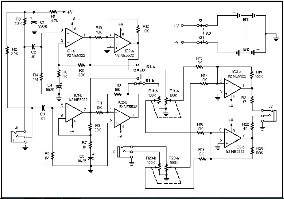 降噪耳機(jī)包括兩個(gè)分離的通道,為了保持立體聲。兩個(gè)通道獨(dú)立,并行處理。噪聲消除是將模擬音頻信號(hào)經(jīng)過這3部分電路的處理來實(shí)現(xiàn)的。