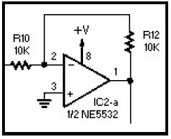 這部分電路通過改變電壓極性來改變信號(hào)相位。通過改變電阻R12和R10的比值,來改變運(yùn)放電路的幅值。