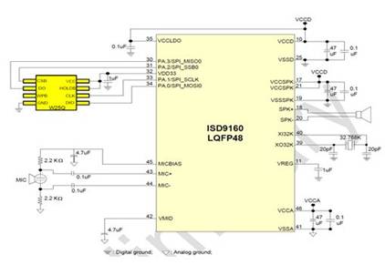 與ADPCM相比,ISD9160的高壓縮算法能達(dá)成超過50%的壓縮,因此不但能降低內(nèi)存大小,同時又能傳達(dá)高質(zhì)量的語音/音頻。其內(nèi)嵌閃存可用來做為用戶程序代碼及音訊儲存空間。ISD9160可使用外接閃存儲存音訊,以延長回放時間。其高度整合式的單芯片解決方案非常適合工業(yè)應(yīng)用及消費(fèi)性產(chǎn)品市場中廣泛的語音/音頻應(yīng)用。