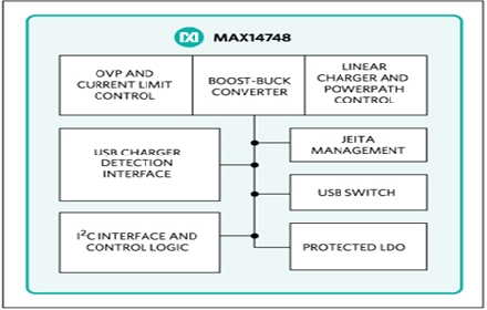 提供附加保護(hù)特性:MAX14748在USB適配器引腳提供28V集成過壓保護(hù)、JEITA充電保護(hù)和±15kV靜電放電保護(hù)。