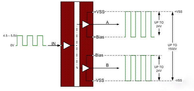 大多數(shù)現(xiàn)有高電壓IC(HVIC)D類驅(qū)動(dòng)器缺乏將低壓調(diào)制部分轉(zhuǎn)為高壓電源部分的能力。能夠提供電平轉(zhuǎn)換的驅(qū)動(dòng)器有也有其他不足,這使得它很難成為D類操作的理想選擇(例如,驅(qū)動(dòng)器輸出接地端子采用負(fù)電壓軌,要求輸入驅(qū)動(dòng)信號(hào)電平轉(zhuǎn)換到負(fù)電源)。通過(guò)分立器件添加該項(xiàng)功能,成本高、設(shè)計(jì)難度大且占用大量空間,具備高電壓雙極供電接口的電平轉(zhuǎn)換解決方案是D類設(shè)計(jì)的顯著優(yōu)勢(shì)。