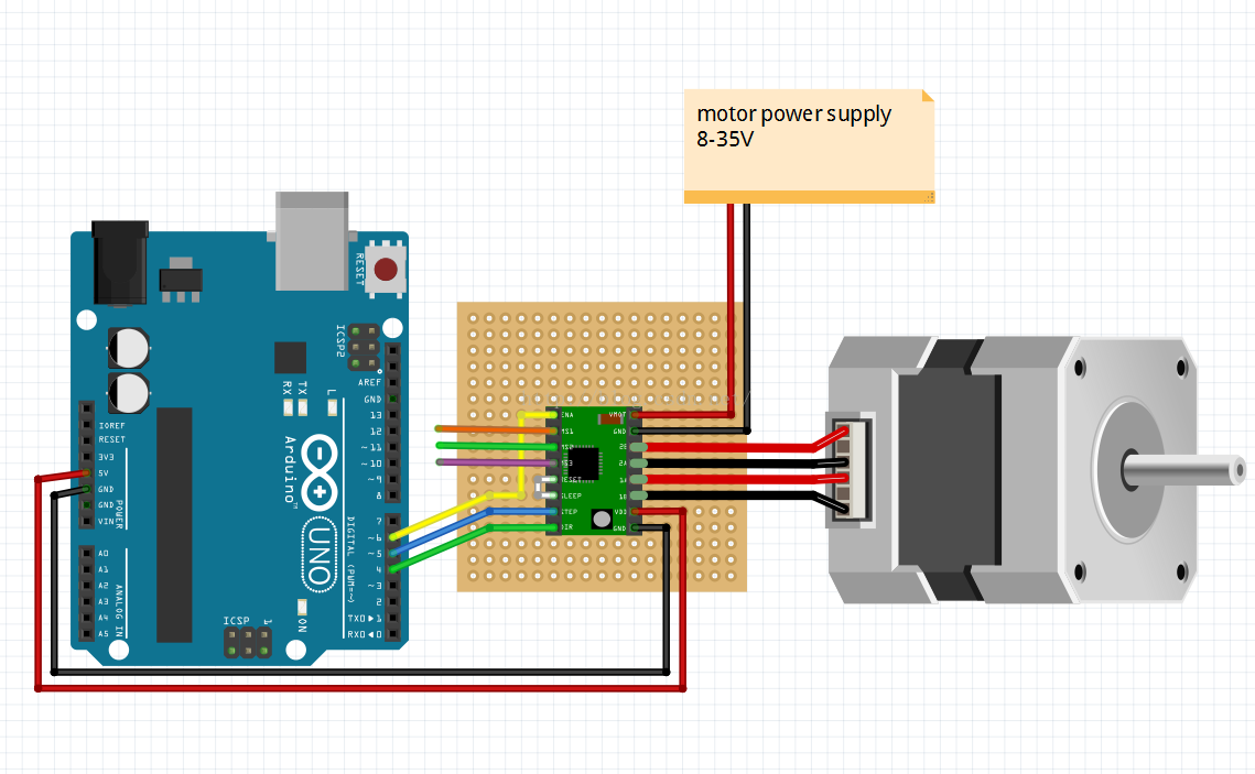 關(guān)于接線更詳細的相關(guān)資料:http://fritzing.org/projects/a4988-single-stepper-test/