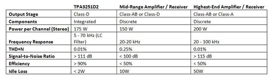 我已經(jīng)發(fā)現(xiàn),TPA325xD2系列高性能D類(lèi)音頻放大器提升了hi-fi器件的音頻性能。TPA3251D2 D類(lèi)放大器具有一個(gè)閉環(huán)架構(gòu),可以比其它高功率D類(lèi)放大器實(shí)現(xiàn)更高帶寬和更低失真音頻。在我親自進(jìn)行收聽(tīng)測(cè)試時(shí),它的音質(zhì)可以與市面上的最高端音頻放大器的音質(zhì)相媲美。下面表格中顯示的是我在進(jìn)行收聽(tīng)測(cè)試時(shí),我聽(tīng)過(guò)的幾個(gè)系統(tǒng)。