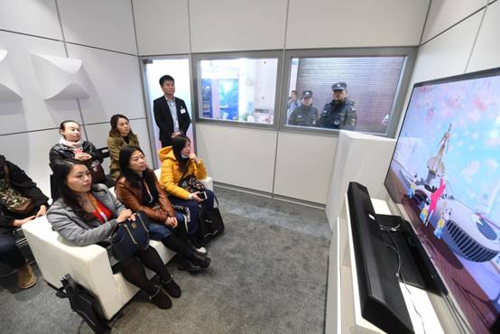 展示區(qū),在工作人員的引領(lǐng)下,記者體驗了支持MPEG-H解碼的3D Soundbar (條形音箱)原型機(jī),感受到三維聲帶來的沉浸式視聽效果。