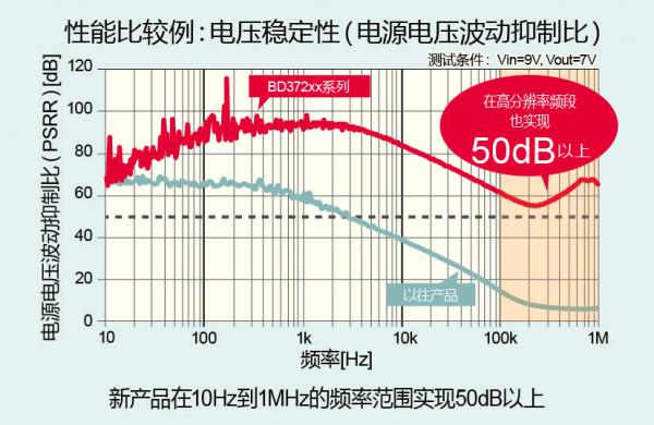 ROHM不僅有正電源,還同時(shí)擁有電路結(jié)構(gòu)一致的負(fù)電源產(chǎn)品,通過兩者組合使用,在特性方面實(shí)現(xiàn)了具有理想對稱性的電源供給?擅鞔_聲像定位,并可很好地表現(xiàn)聲音的空間傳播力。