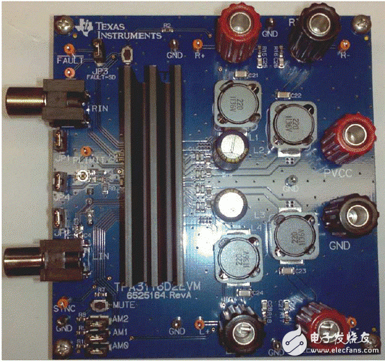 The TPA3116D2EVM evaluation module (EVM) demonstrates the integrated circuits TPA3116D2 from Texas Instruments (TI)。