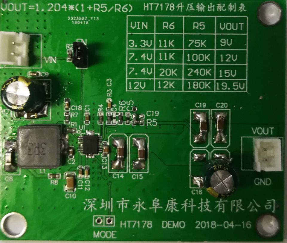 HT7178具有2.7V至12V寬輸入電壓范圍,可為采用單節(jié)或兩節(jié)鋰電池,或12V鉛酸電池的應(yīng)用提供支持。該器件具備12A開(kāi)關(guān)電流能力,并且能夠提供高達(dá)20V的輸出電壓。