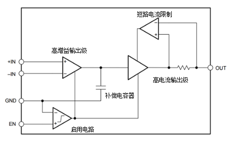 啟用電路(ENC)可在放大器處于啟用或關(guān)閉模式時(shí)保持對(duì)輸入級(jí)和輸出級(jí)的控制。啟用后,ENC能夠平穩(wěn)地轉(zhuǎn)換為驅(qū)動(dòng)增益級(jí)和輸出級(jí)。關(guān)閉后,ENC能夠控制補(bǔ)償電容器的充電,并禁用增益級(jí)和輸出級(jí)。優(yōu)化進(jìn)出關(guān)閉模式的過(guò)渡,可確保極小的電流注入到耳機(jī)負(fù)載中,從而最大限度減少噪音。