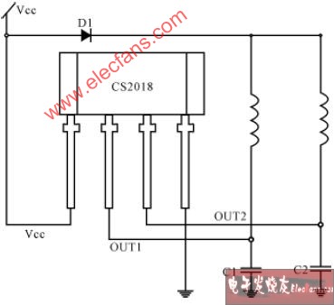 圖15 用CS2018霍爾開(kāi)關(guān)鎖定電路直接驅(qū)動(dòng)電機(jī)的線(xiàn)路示意圖 (圖中的線(xiàn)圈為電機(jī)定子繞組)