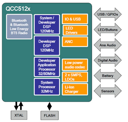 圖示1-Qualcomm高性能、低功耗音頻平臺QCC5100系列的系統(tǒng)架構(gòu)圖