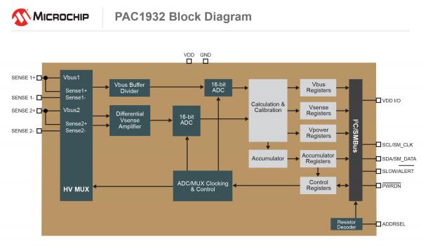 PAC1932/33可以與Linux®和Windows 10軟件驅(qū)動程序配合使用,PAC1932/33的寄存器與ADM00808評估板兼容,可用于著手進行開發(fā),其圖形用戶界面會提供Vsense、Vbus、功耗和累積功耗報告。 |
