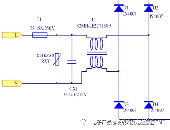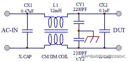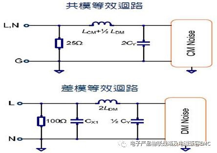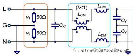 濾波器EMI-傳導(dǎo)的典型差模共模的等效設(shè)計(jì)圖如下: