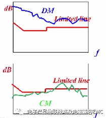 在實(shí)際運(yùn)用中如果沒有插入輸入EMI的低通濾波器;我們采用差模和共模分離器進(jìn)行無濾波器系統(tǒng)的理論研究如下:我們的測(cè)試的差模和共模的限值情況如下: