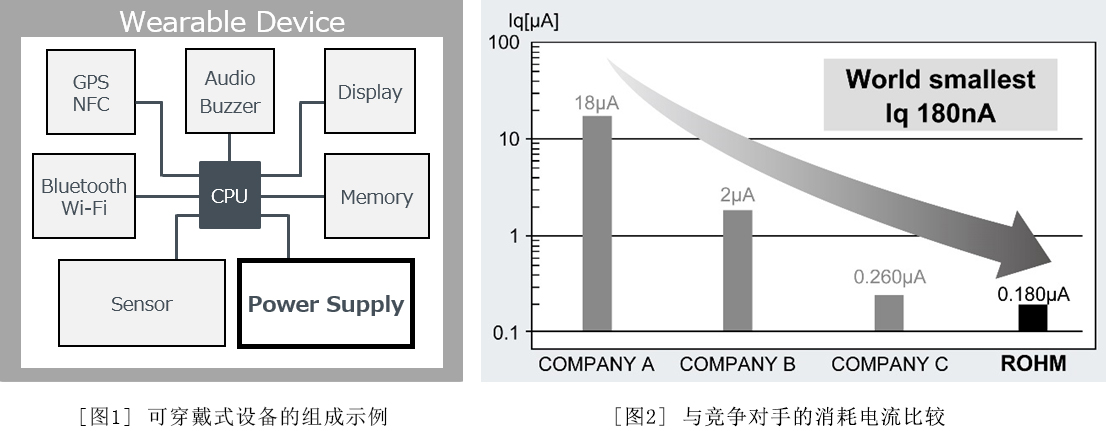 近年來,智能手機等移動設(shè)備、可穿戴式設(shè)備及IoT設(shè)備等用電池驅(qū)動的電子設(shè)備迅速普及。而且,為了提高產(chǎn)品的設(shè)計靈活度并確保配置新功能所用的空間,要求這些產(chǎn)品上搭載的元器件的功耗要降低到極限,以實現(xiàn)小型化并延長電池使用壽命。