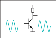 圖2 .B類(lèi)音頻放大器中,輸出晶體管僅在信號(hào)波形的半周期(180°)期間導(dǎo)通。為放大整個(gè)信號(hào),使用兩個(gè)晶體管,其中一個(gè)在正向輸出信號(hào)導(dǎo)通,另一個(gè)在負(fù)向輸出信號(hào)導(dǎo)通。