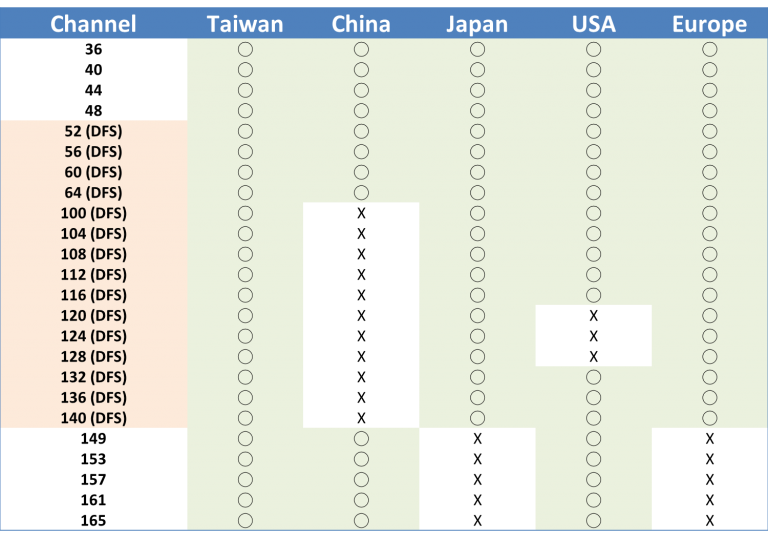 DFS這項(xiàng)認(rèn)證會(huì)要求使用5GHz頻段的Wi-Fi產(chǎn)品,當(dāng)偵測(cè)到同頻段雷達(dá)信號(hào)時(shí),要自動(dòng)切換到其他頻道;每個(gè)國(guó)家開放的5GHz頻道不一樣,有些國(guó)家有著較強(qiáng)的抗干擾技術(shù),會(huì)開放比較多的頻段,有些國(guó)家則開放較少、甚至沒有。