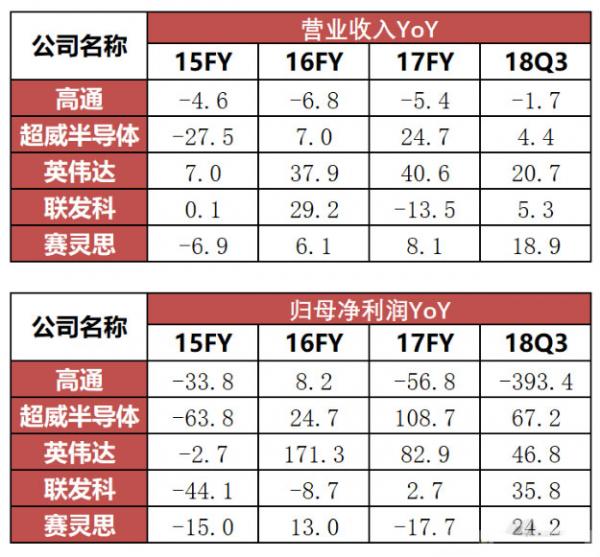 那全球半導(dǎo)體到底有多差呢?我們來看看全球十大半導(dǎo)體巨頭近4年的業(yè)績(jī)?cè)鏊偾闆r: