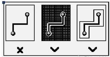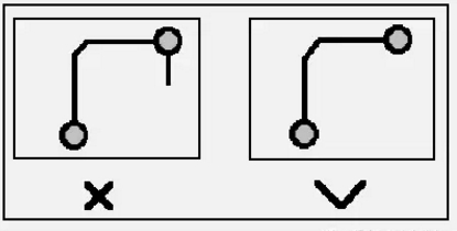 PCB設(shè)計(jì)中應(yīng)避免產(chǎn)生銳角和直角, 產(chǎn)生不必要的輻射,同時(shí)工藝性能也不好。