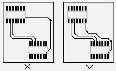 同一網(wǎng)絡(luò)的布線寬度應(yīng)保持一致,線寬的變化會(huì)造成線路特性阻抗的不均勻,當(dāng)傳輸?shù)乃俣容^高時(shí)會(huì)產(chǎn)生反射,在設(shè)計(jì)中應(yīng)該盡量避免這種情況。在某些條件下,如接插件引出線,BGA封裝的引出線類似的結(jié)構(gòu)時(shí),可能無法避免線寬的變化,應(yīng)該盡量減少中間不一致部分的有效長(zhǎng)度。
