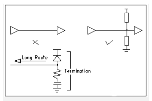 主要針對(duì)高頻信號(hào)設(shè)計(jì)而言, 即布線長(zhǎng)度不得與其波長(zhǎng)成整數(shù)倍關(guān)系, 以免產(chǎn)生諧振現(xiàn)象。