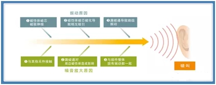 振動原因:磁性體磁芯磁化導(dǎo)致相互吸引