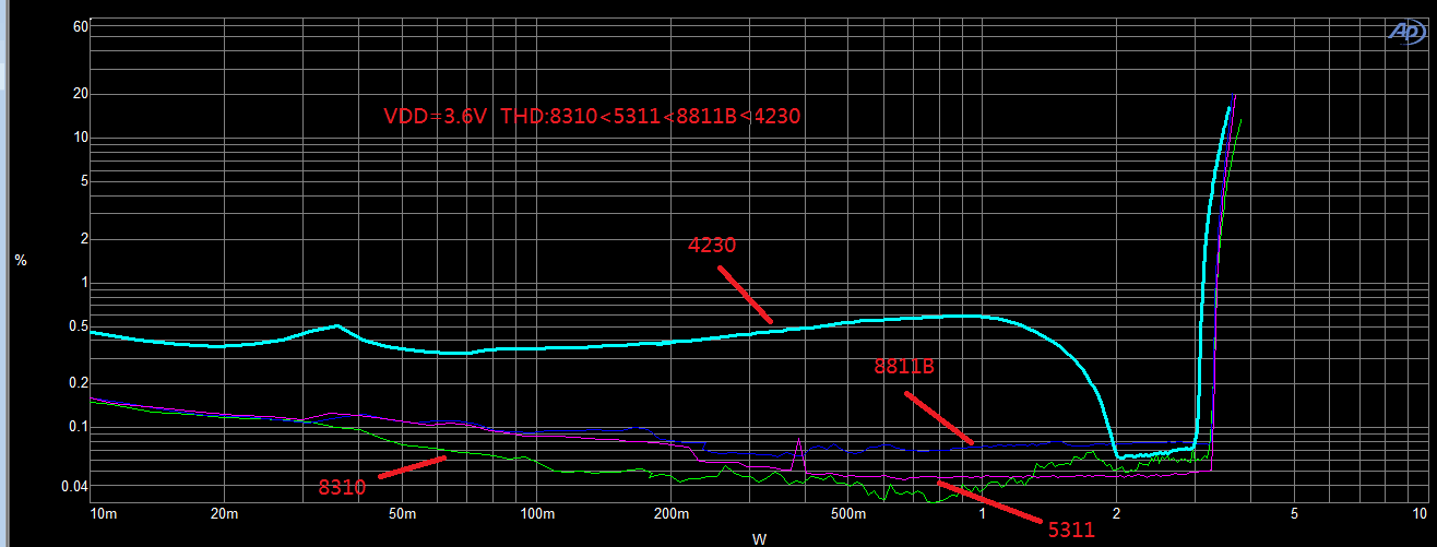 | 單電荷泵升壓單聲道功放IC-HT8310/ANT8811B/LTK5311測試對比 |