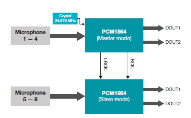 在采用多麥克風(fēng)設(shè)計和語音識別時,我們也無需重新設(shè)計;赑CM1864 的TI 圓形麥克風(fēng)板(CMB) 參考設(shè)計(如圖 3 所示)使用兩個4通道音頻ADC 與一組模擬麥克風(fēng)(最多含八個)連接,并且可以在嘈雜的環(huán)境中提取清晰的用戶語音指令。