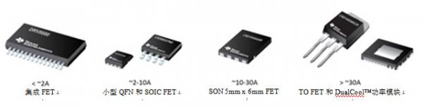 小型電池供電工具和家用電器占用的10A-30A空間是5mm×6mm QFN的最佳選擇。除此之外,電流更高的電動(dòng)和園藝工具傾向于并聯(lián)多個(gè)FET,或采用如D2PAK的大型封裝器件或如TO-220的通孔封裝。這些封裝可容納更多硅,從而降低電阻、提高電流能力和優(yōu)化散熱性能。在大型散熱器上安裝通孔封裝可實(shí)現(xiàn)更多損耗,并可消耗更多功率。