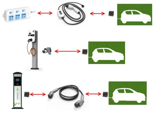 在交流充電中,具體會涉及到下面三種場景,這里只分析充電模式三、連接方式C這種場景(對應中間圖片),因為其他兩種場景與其類似。