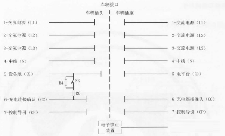 S3位于充電插頭處,與充電槍上的機械鎖聯(lián)動,默認是導通狀態(tài),用于車輛確認插頭的連接狀態(tài);當按下充電槍機械按鍵、準備插槍時,S3是斷開的,R4與RC成串聯(lián)狀態(tài);插入后,松開按鍵,S3又變回導通狀態(tài),將R4短路;