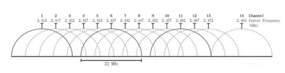 2.4GHz頻段可分為14個WLAN信道,除了第14號信道與第13信道間隔了12MHz外,其余每個信道之間的間隔均為5MHz,而IEEE 802.11標準規(guī)定,每一個信號都需要占用20MHz(實際上是22MHz)的頻寬,相當于5個WLAN信道,因此當無線路由器占用2.4GHz頻段的某個信道時,以該信道為中心共計5個WLAN信道都會納入到該路由器所使用的范圍內(nèi)。舉例說明,當路由器占用2.4GHz頻段的第4號信道時,其實際上已經(jīng)占用了第2至第6號共計5個信道,因此在2.4GHz頻段下實際占用的信道比需要使用的信道要多出一些,所以2.4GHz頻段更加容易占滿。