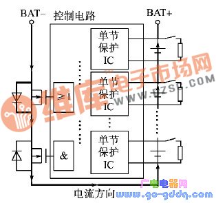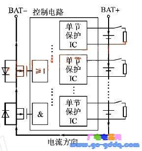 圖1 具備均衡充電能力的鋰電池組保護(hù)板示意圖