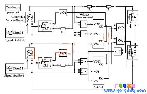 圖5 2節(jié)鋰電池串聯(lián)均充保護(hù)仿真模型