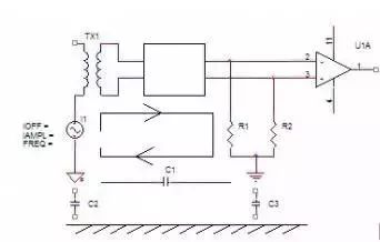 通過空間磁場耦合到具有一定環(huán)路面積的信號回路或地線環(huán)中,造成對信號的影響。另外來自開關電源或市電網絡的高頻干擾可能通過空間雜散電容直接耦合到信號回路。
