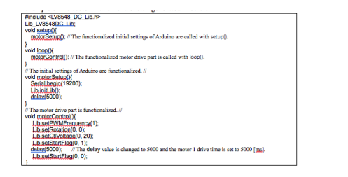 插件電機(jī)驅(qū)動模塊提供預(yù)先設(shè)計(jì)的硬件作為模塊,基于開放源碼架構(gòu),可隨時進(jìn)行定制。主機(jī)PC與Arduino MICRO* 1之間的USB聯(lián)接使DC電機(jī)能使用串行通信控制。開發(fā)環(huán)境包括運(yùn)行Arduino IDE 1.8.4的Windows PC、基板和AC適配器,輸出電壓4V至16V,輸出電流約2A。該軟件包括一個應(yīng)用編程接口(API)庫和對設(shè)計(jì)人員最重要的強(qiáng)大的圖形用戶接口(GUI),能自動生成Arduino代碼,可導(dǎo)出為Arduino Sketch (.ino)文件。此代碼也可以與Arduino IDE一起使用。