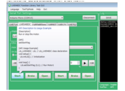 由于開發(fā)套件可支持基于不同類型電機(jī)的設(shè)計(jì),用戶可以看到安森美半導(dǎo)體的電機(jī)方案GUI為與所用電機(jī)類型相匹配而改變。GUI支持簡單的參數(shù)設(shè)置和電機(jī)驅(qū)動器IC的配置,而不需要經(jīng)常參考說明書。實(shí)際應(yīng)用是,開發(fā)人員可以在沒有深入了解所用電機(jī)的情況下進(jìn)行設(shè)計(jì)。這加速了電機(jī)控制的設(shè)計(jì)進(jìn)程,得益于一個快速高效的開發(fā)環(huán)境。例如,僅通過設(shè)置目標(biāo)速度,就可以使用電機(jī)驅(qū)動API函數(shù)庫“setTargetDrive()”來控制LV8548有刷直流電機(jī)控制驅(qū)動器。