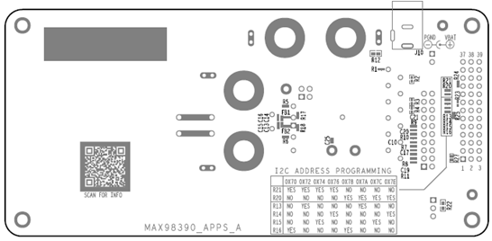 圖13.評估系統(tǒng)MAX98390 EVS PCB設(shè)計圖:底層元件放置圖(絲印圖)