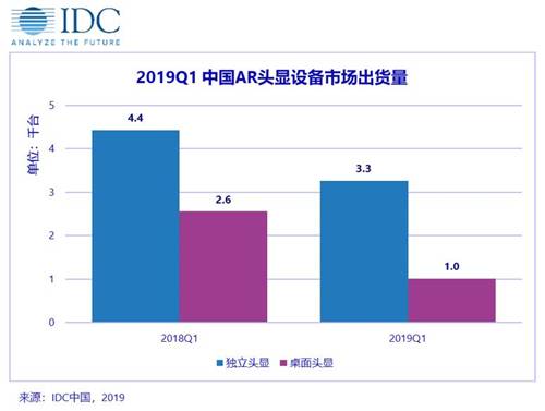 國際數(shù)據(jù)公司(IDC)近期發(fā)布的《中國VR/AR市場季度跟蹤報告》顯示,2019年第一季度中國地區(qū)頭顯設(shè)備出貨量接近27.5萬臺,同比增長15.1%。其中VR頭顯設(shè)備出貨量同比增長17.6%,增量主要來自于桌面頭顯以及獨立頭顯設(shè)備市場,各細(xì)分市場中頭部廠商市場占比逐漸拉大。